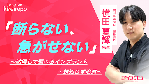 この度、美容医療(自由診療・審美歯科)のプラットフォーム「キレイレポ」に横田 夏輝 先生の「インプラント治療と親知らず治療」の記事が掲載されました。
