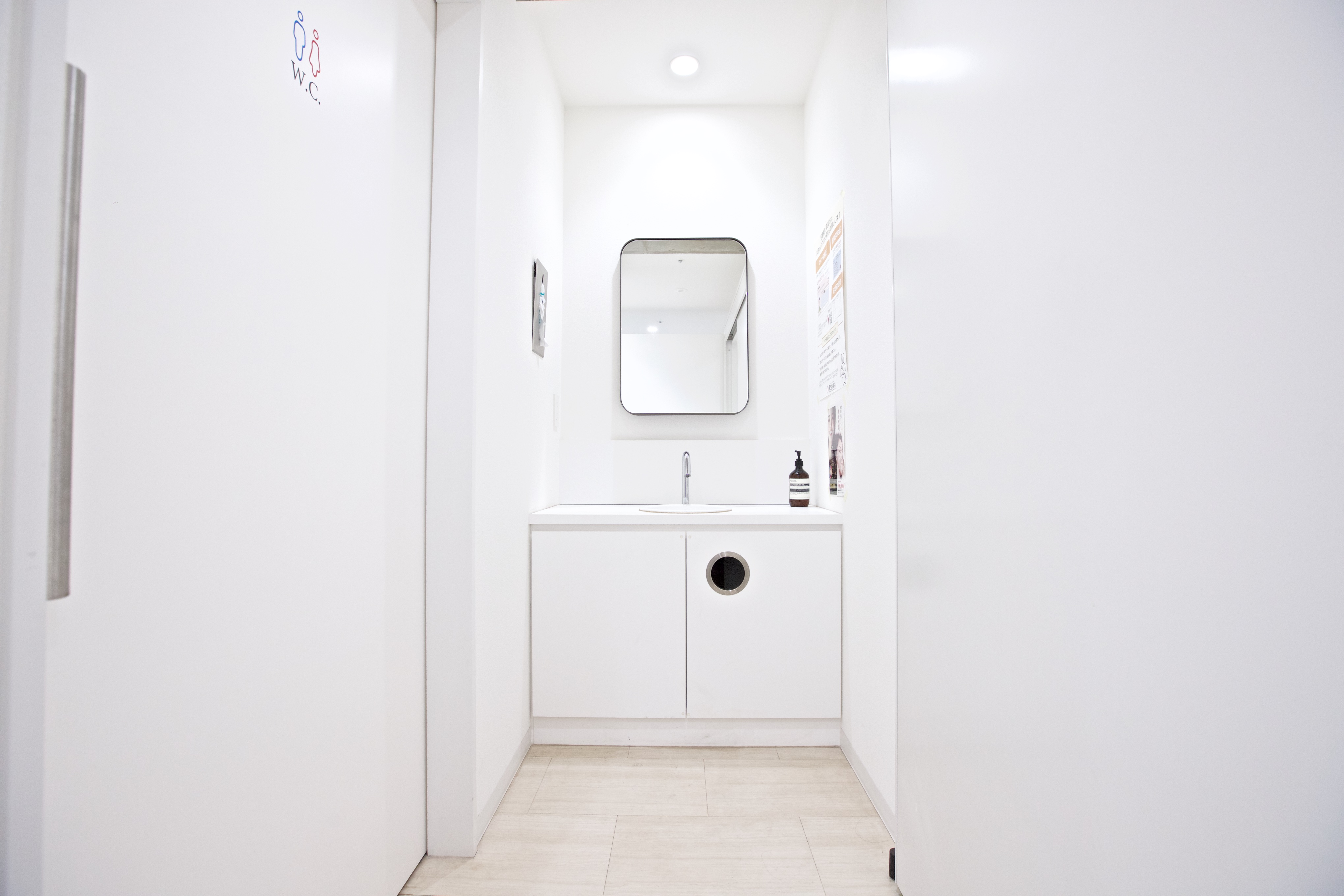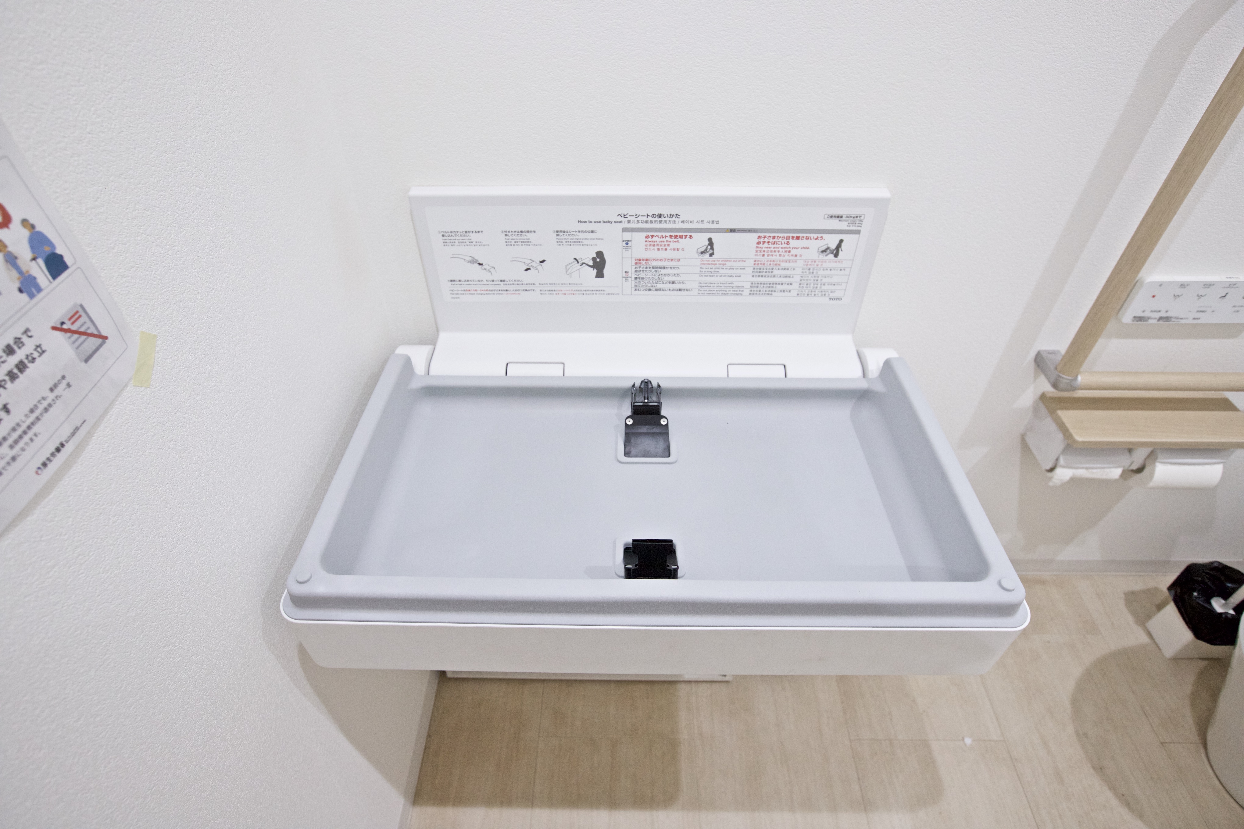 お手洗いは、清潔に保たれており、どなたでも快適にご利用いただけます。おむつ替え台も設置しており、小さなお子様連れの方も安心です。
